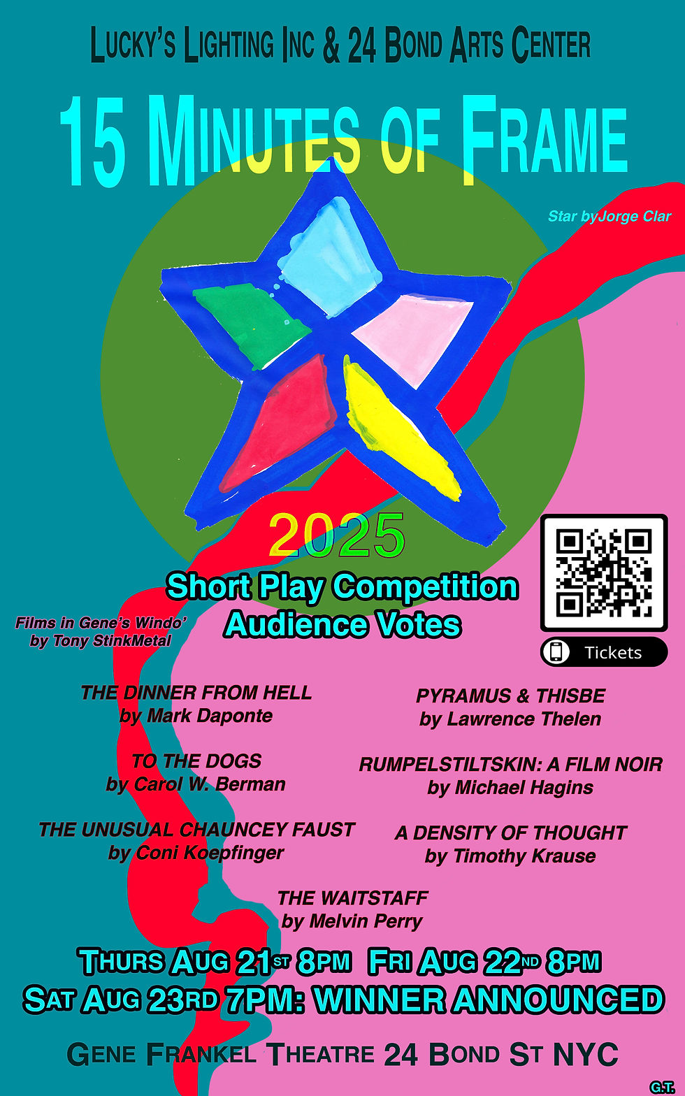 These incredibly gifted playwrights have gathered actors and rehearsed within an extremely limited amount of time, calibrating artists as they compete for an extended weekend at the Gene Frankel Theatre. The audience will vote on which play they would like to see developed!